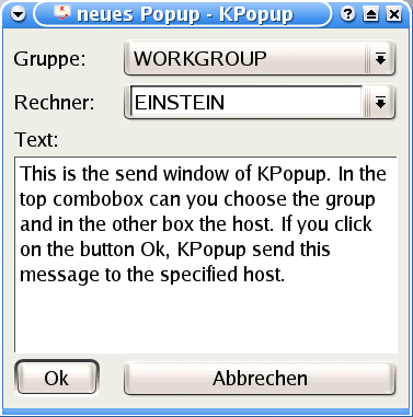 KPopup ist ein Programm zum senden und empfangen von Microsoft© WinPopup